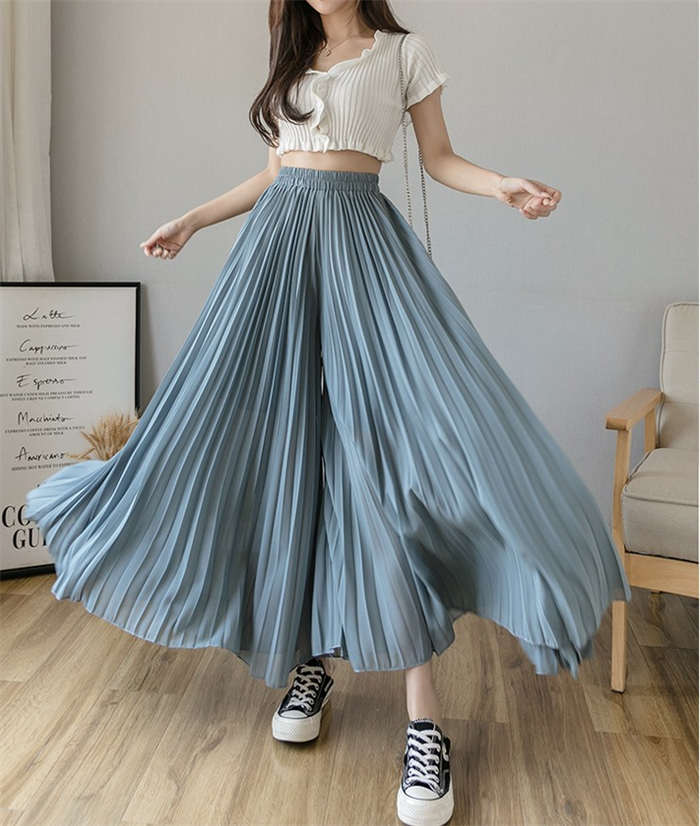 上品に広がるワイドシルエットプリーツパ