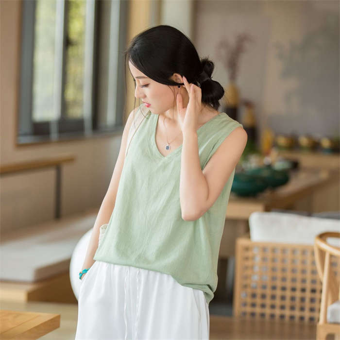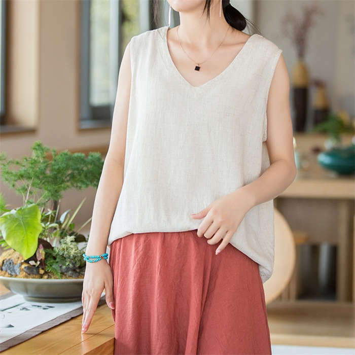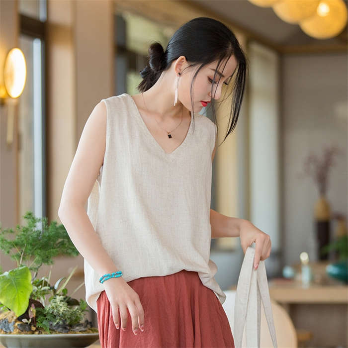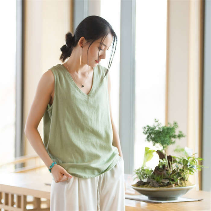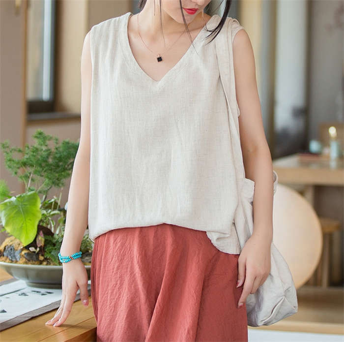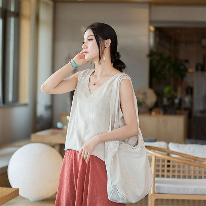 綿麻タンクトップ レディース ノースリ