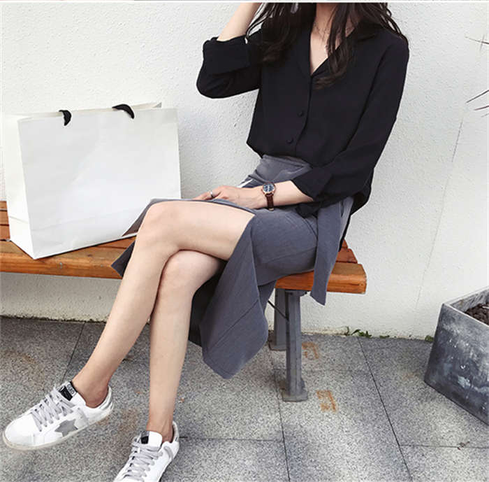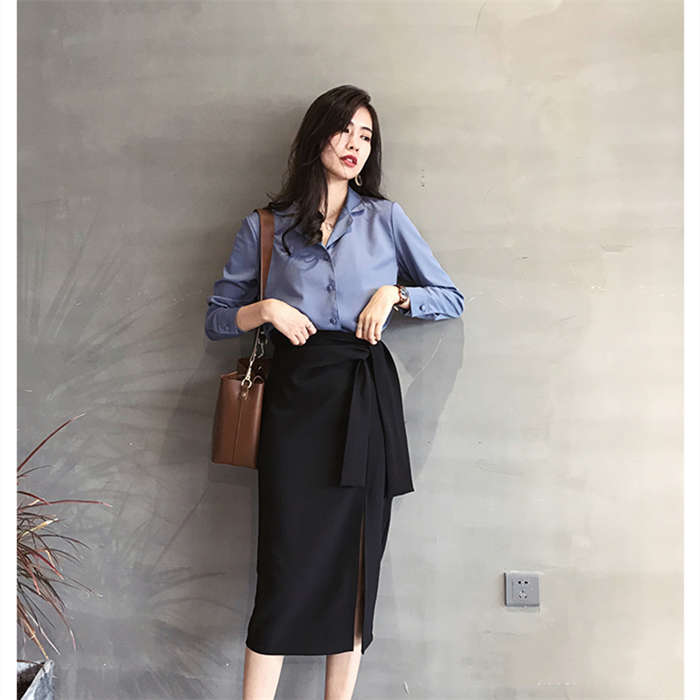 シアースリーブ ドッキングシャツ ボウタイシャツブラウス