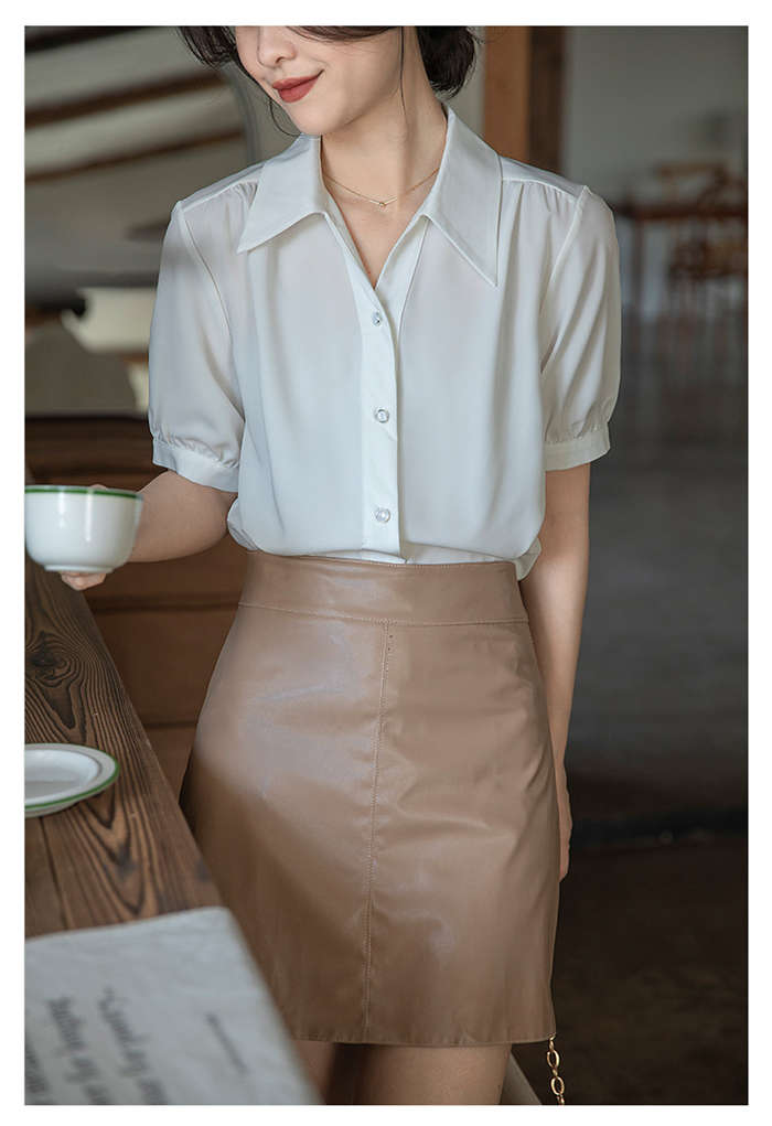 シアースリーブ ドッキングシャツ ボウタイシャツブラウス