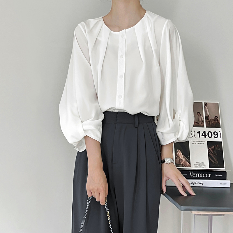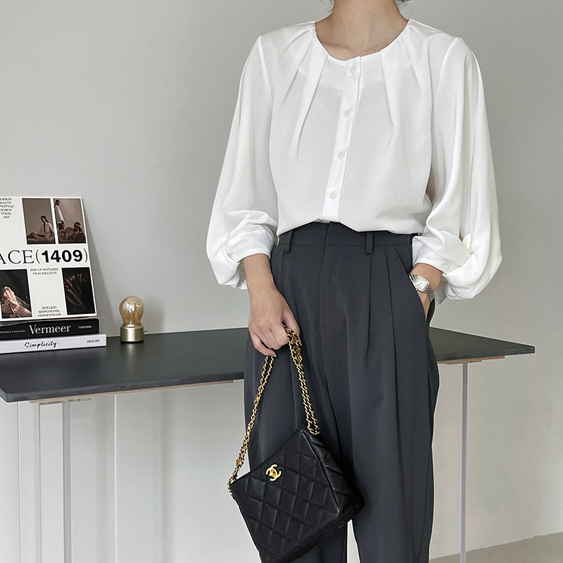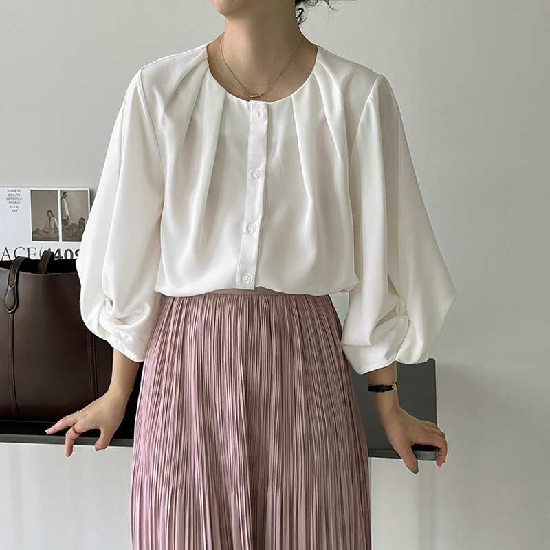 シアースリーブ ドッキングシャツ ボウタイシャツブラウス
