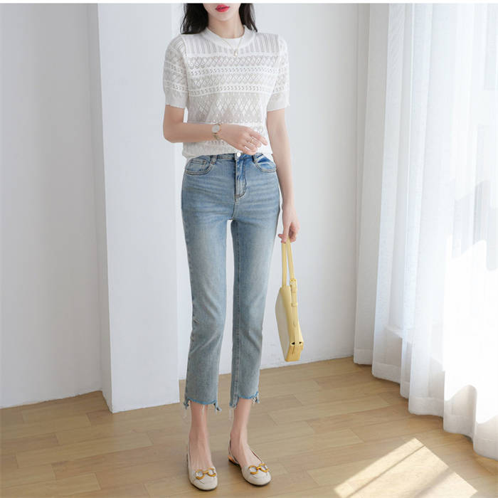 デニムパンツ ビジュー付き