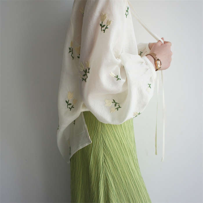 シフォンブラウス シアーブラウス ボリューム袖