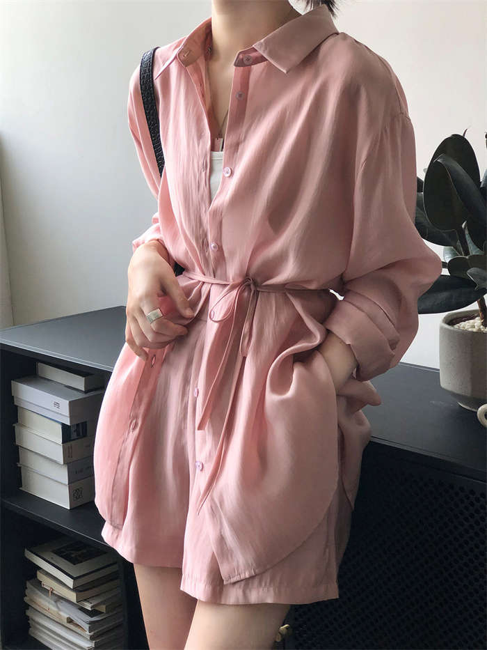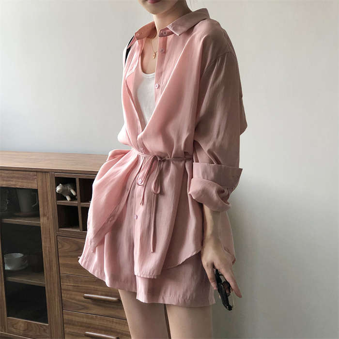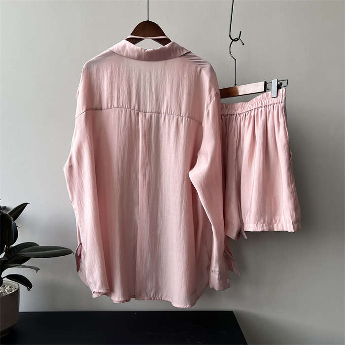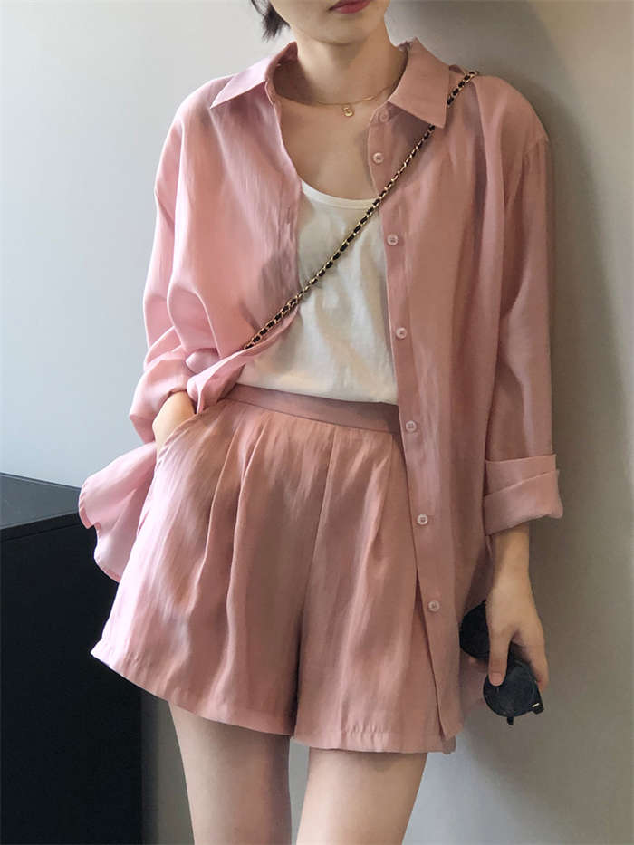シアーシャツ × ショートパンツ 上下