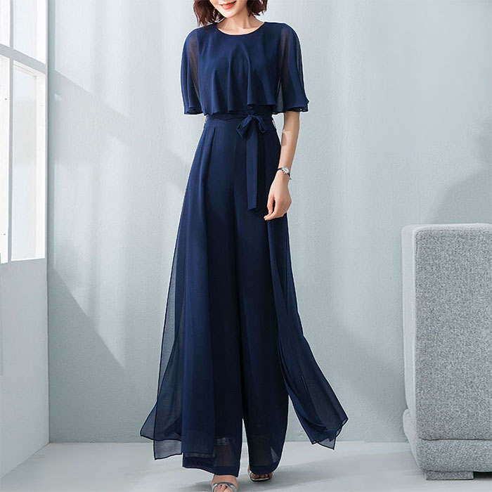 フェミニンなロング丈のシフォンドレス