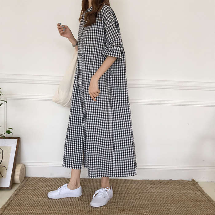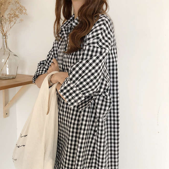 チェック柄入り ロング丈シャツワンピー