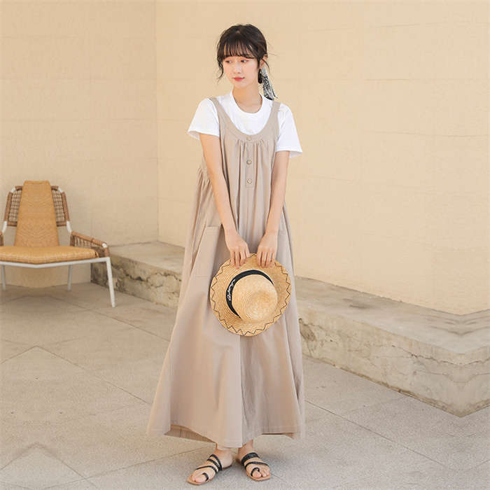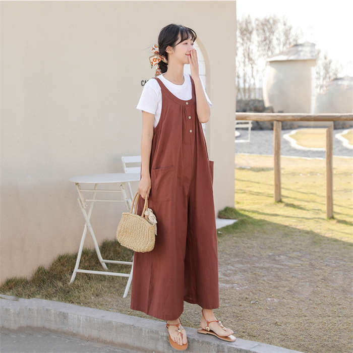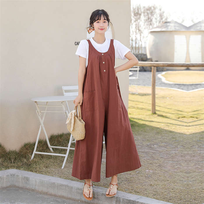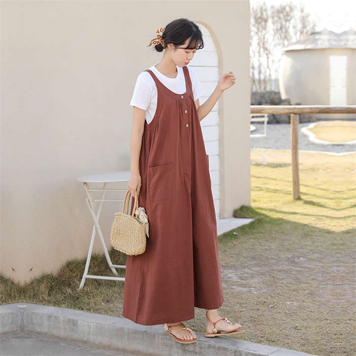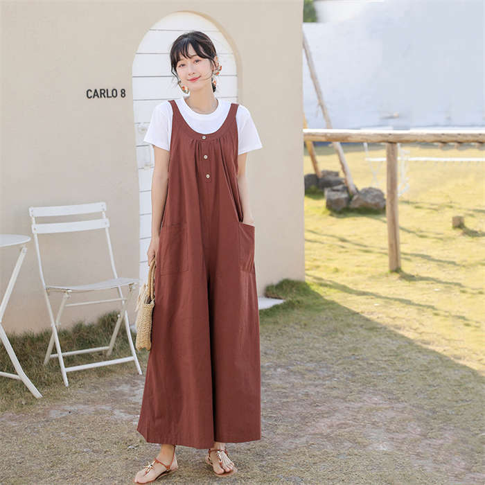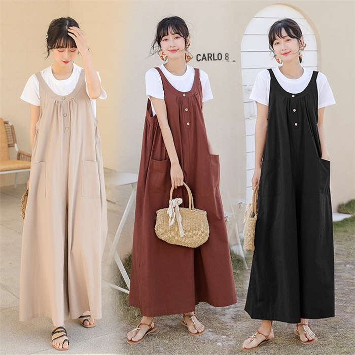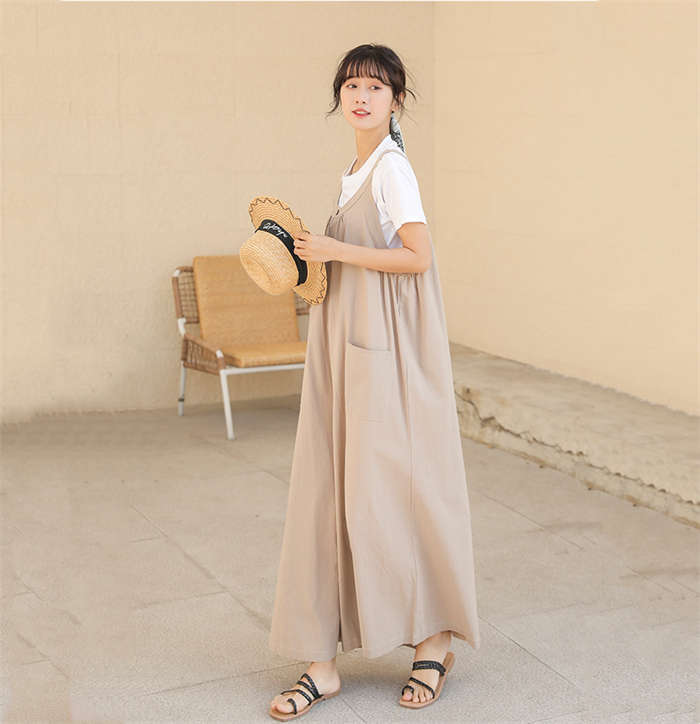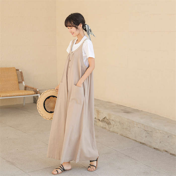ゆるっと自然に着瘦せ 綿麻素材 サロペ