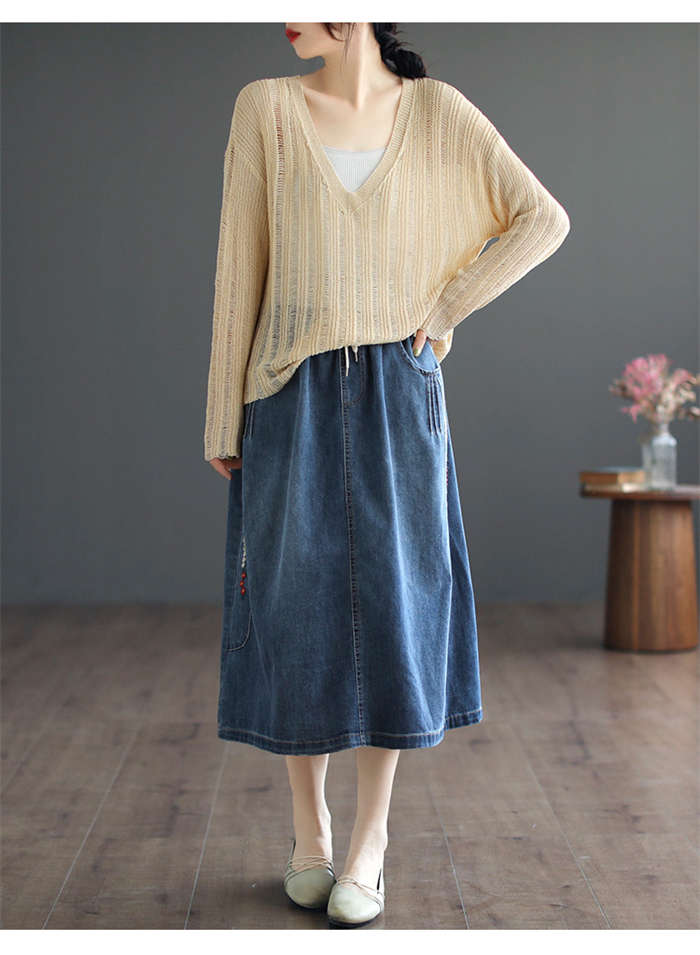 デニムパンツ ビジュー付き