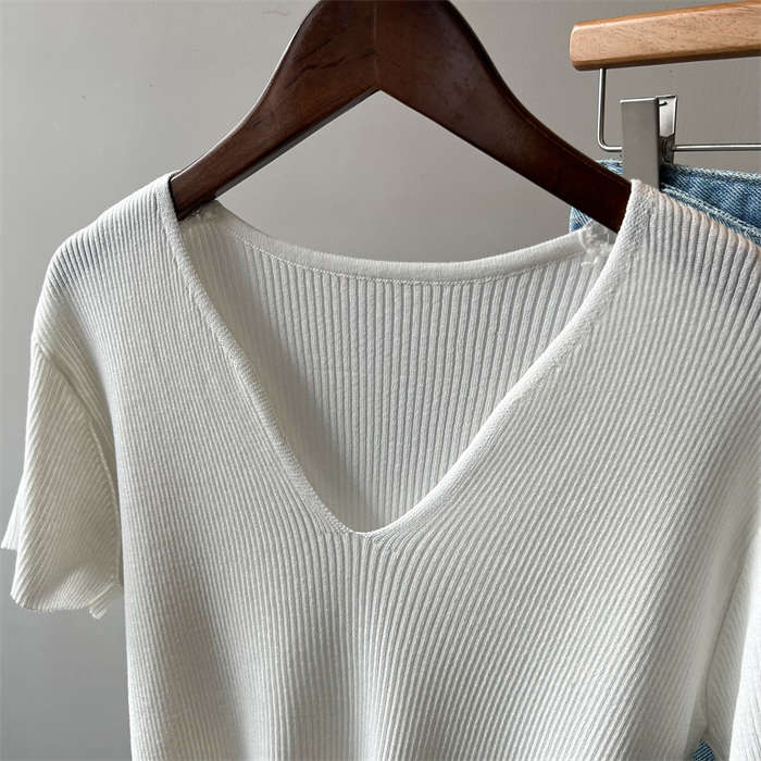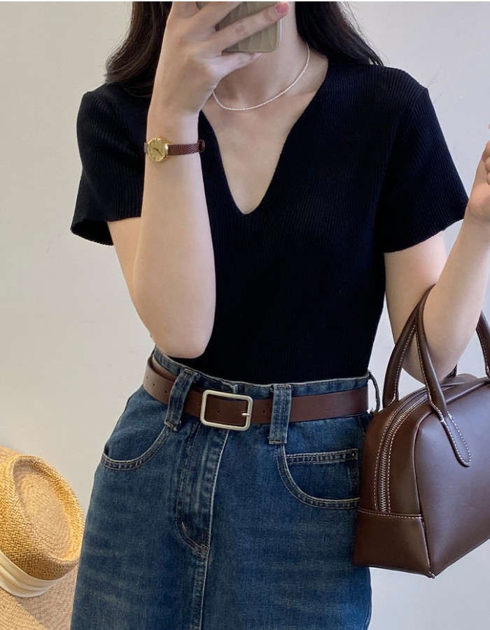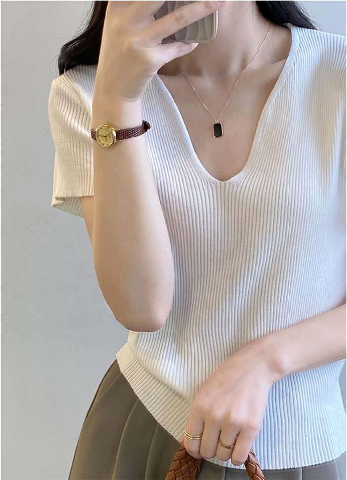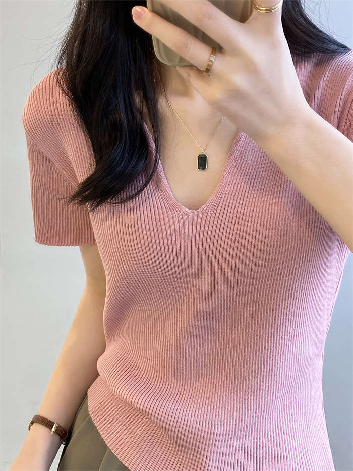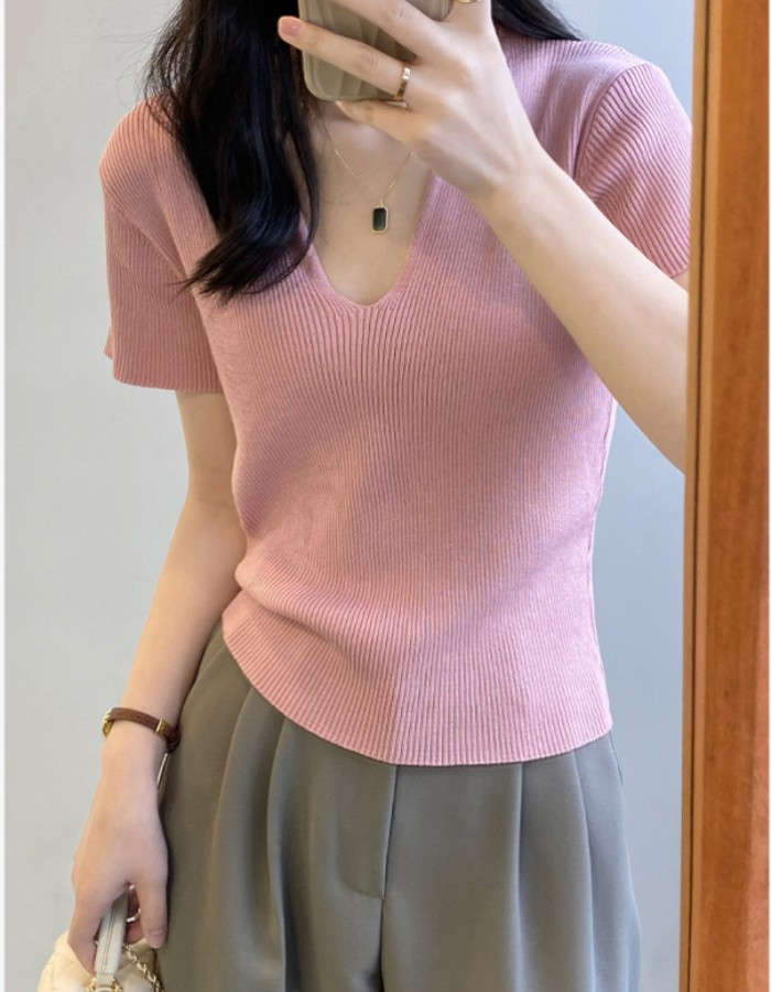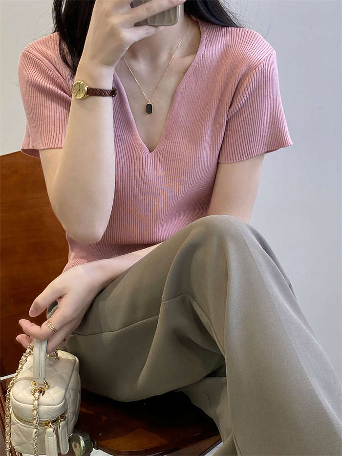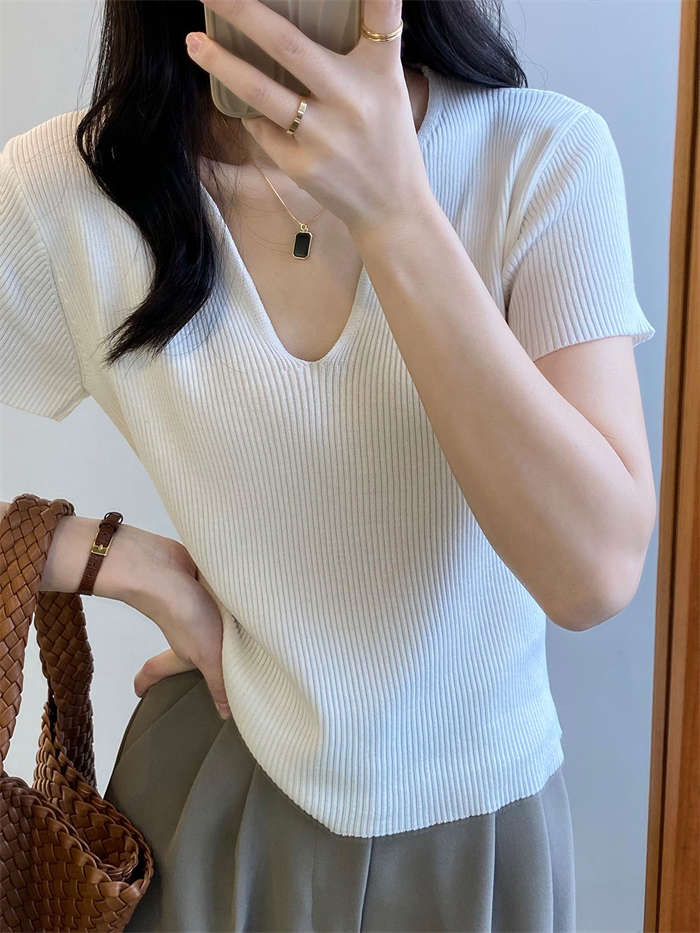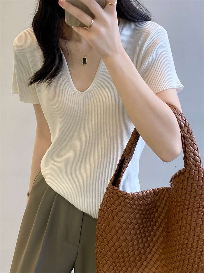 着回し力抜群な半袖ニットは、顔周りがス