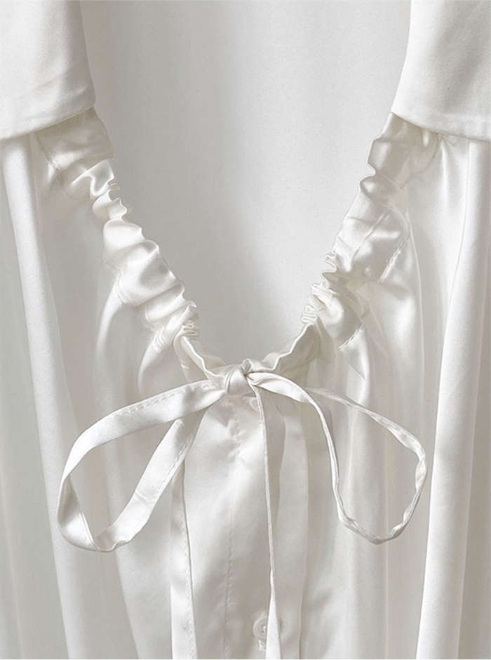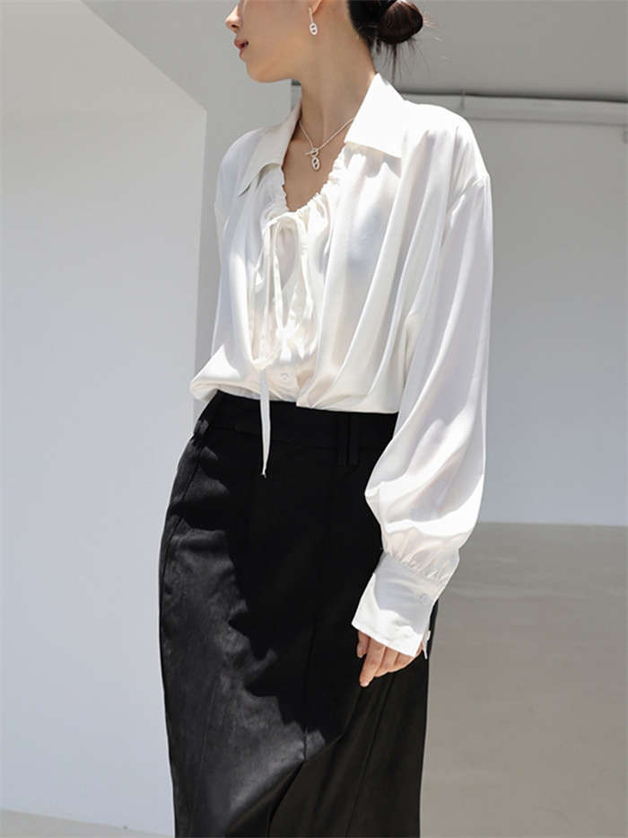 シアースリーブ ドッキングシャツ ボウタイシャツブラウス
