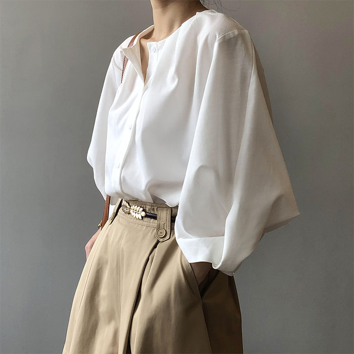 シフォンブラウス シアーブラウス ボリューム袖