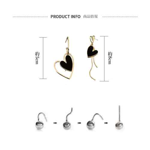 左右非対称 ハートピアス レディース
