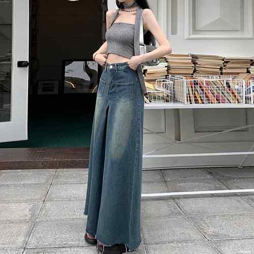 ウォッシュ加工ジーンズ カットオフバギ