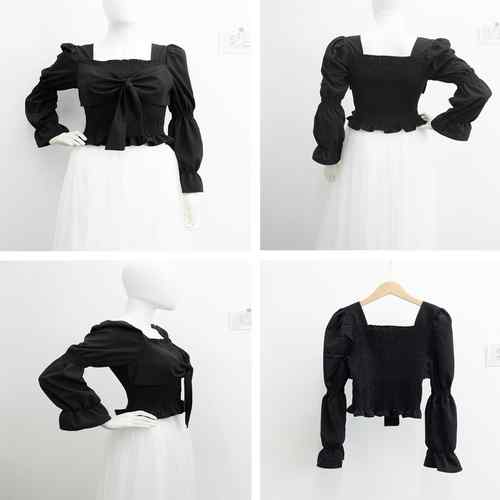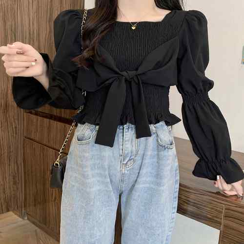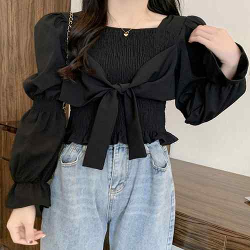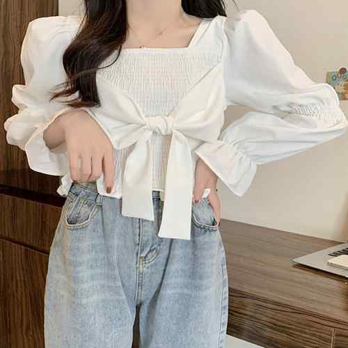 シアースリーブ ドッキングシャツ ボウタイシャツブラウス