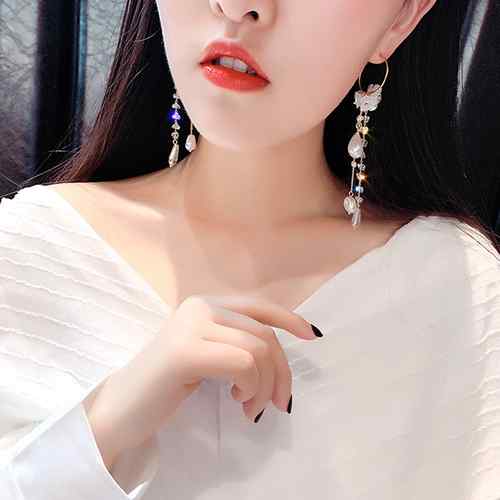 パール ロングピアス フープ 大きめ