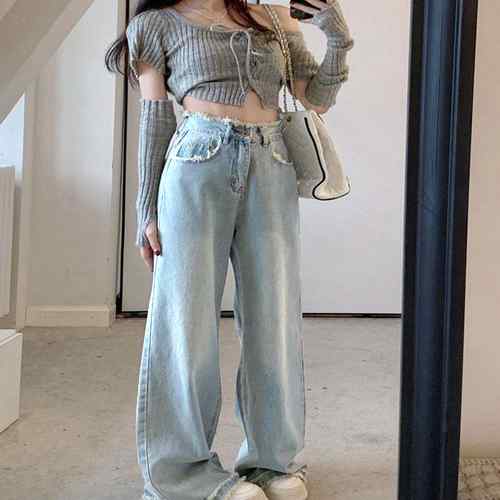 デニムパンツ ビジュー付き