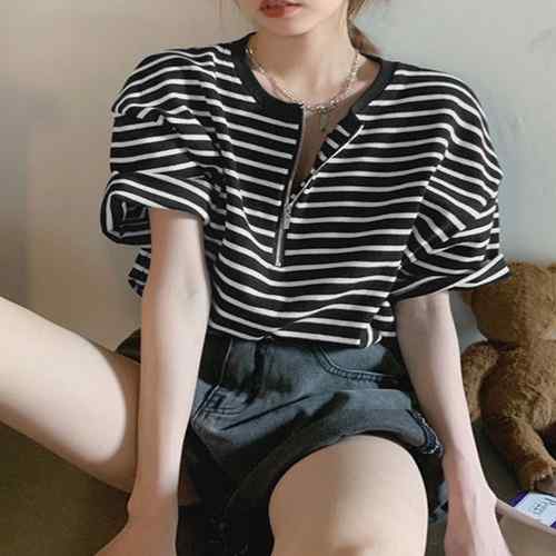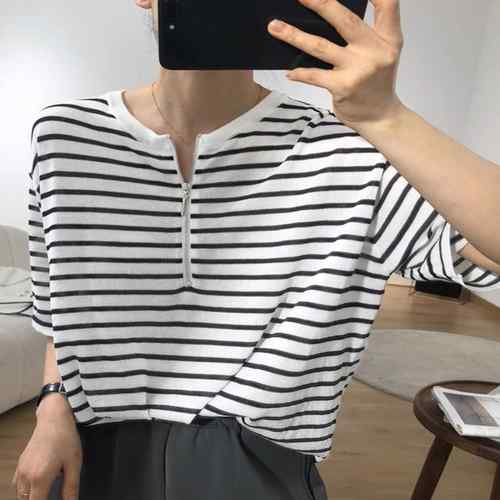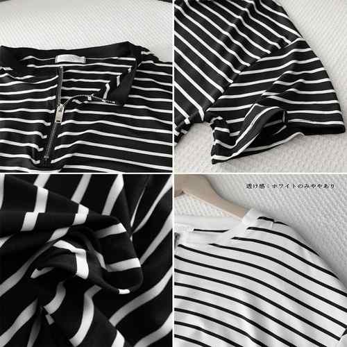 ハーフジップTシャツ 5分袖 着やせ