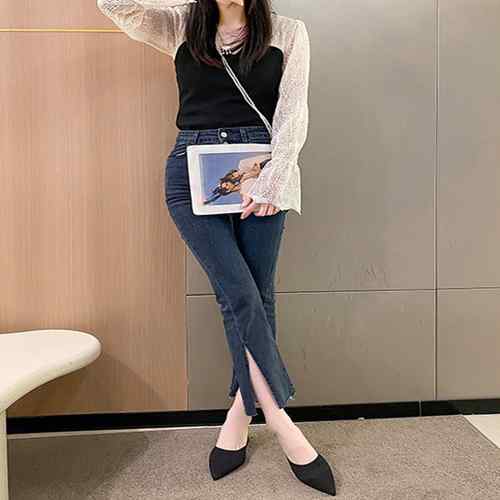 デニムパンツ ビジュー付き