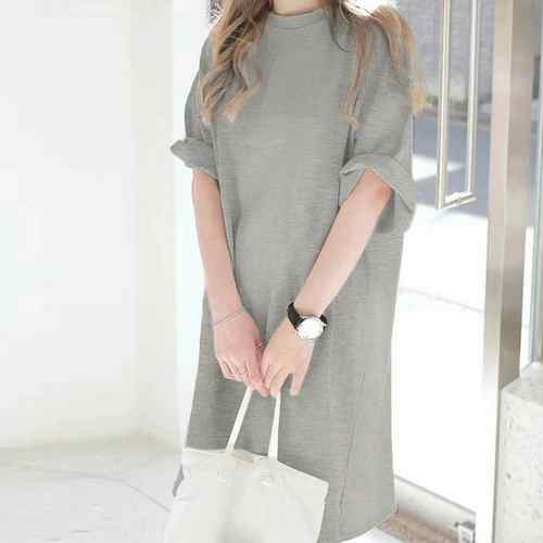 レディース 無地 ロングTシャツ ベー