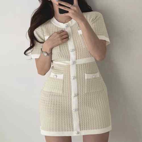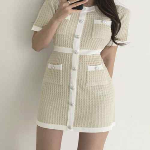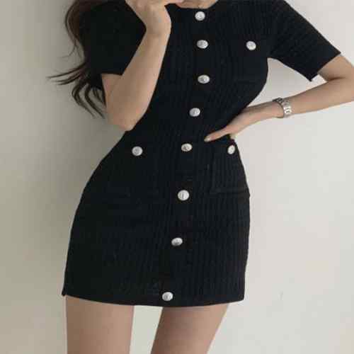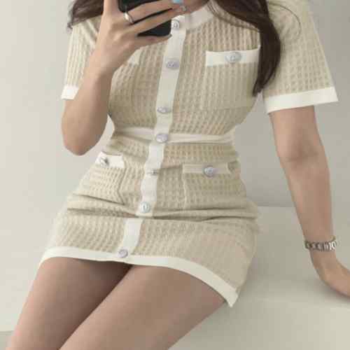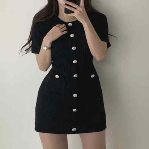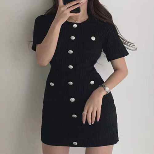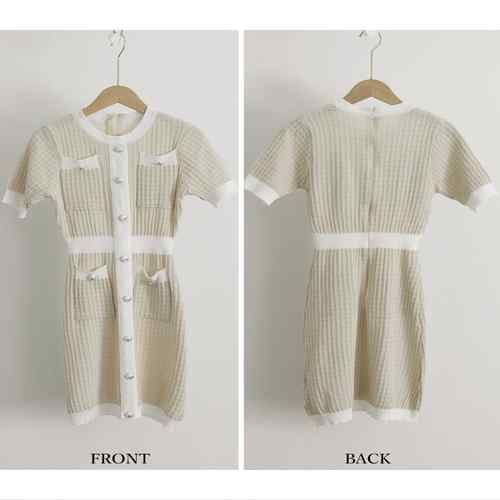 レディース ラウンドネック 銀ボタン