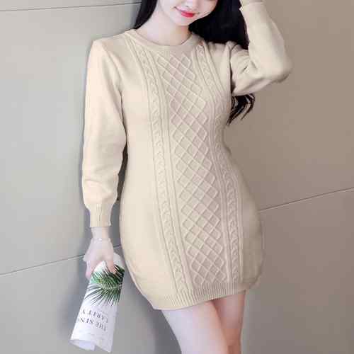 タイトワンピース クルーネック ケーブ
