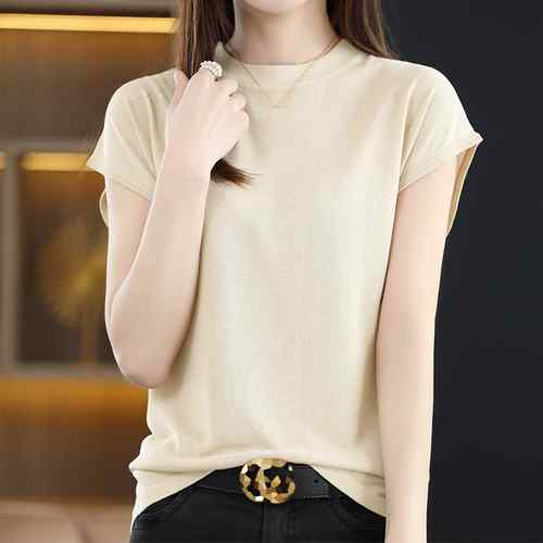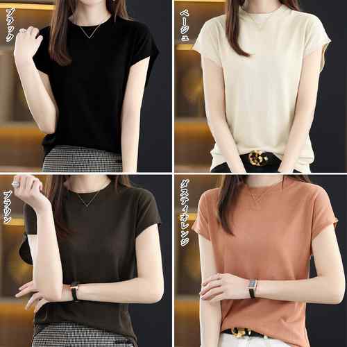 韓国 フレンチスリーブ ニットTシャツ