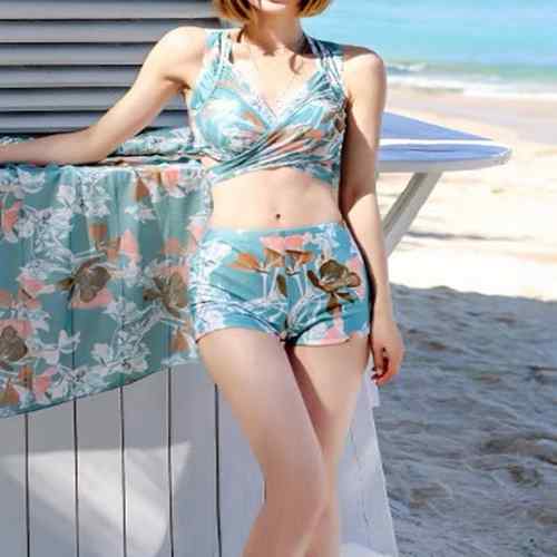 花柄水着セット ホルターネックタンキニ