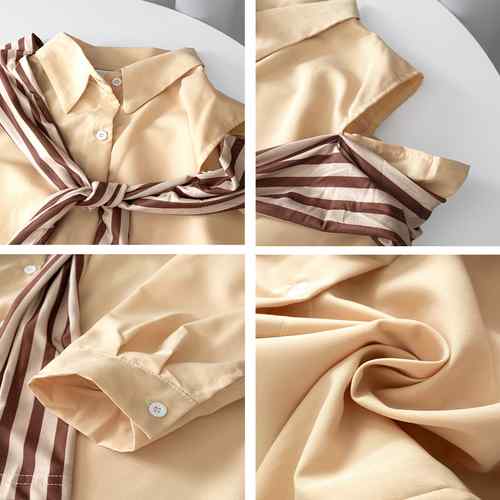 シアースリーブ ドッキングシャツ ボウタイシャツブラウス