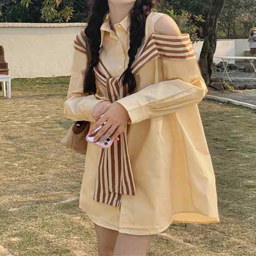 肩開きカットアウトシャツ レディース
