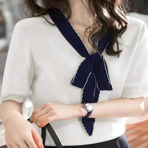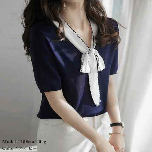 シアースリーブ ドッキングシャツ ボウタイシャツブラウス