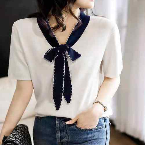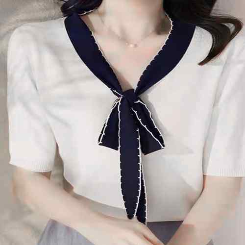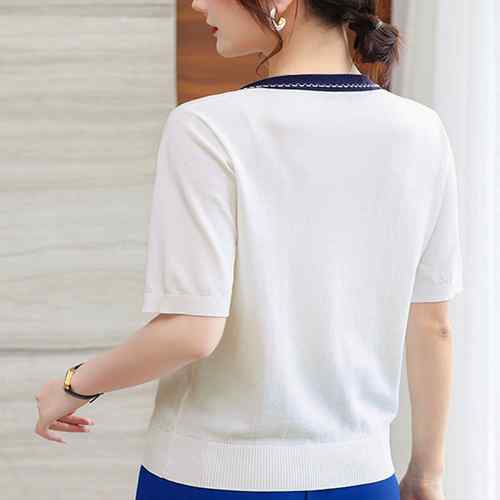 レディース 春夏半袖ニットソー 着やせ