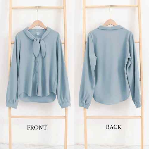 シアースリーブ ドッキングシャツ ボウタイシャツブラウス