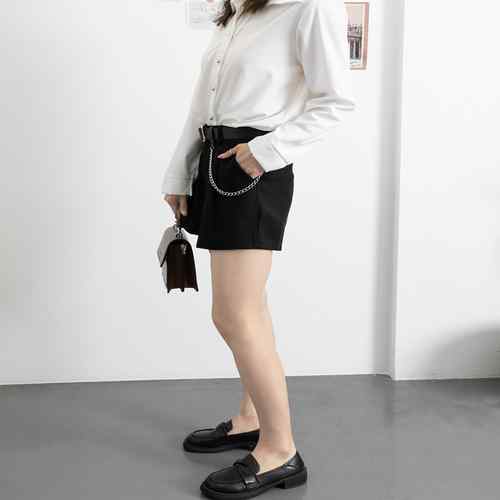 タックショートパンツ ベルト付き ベー