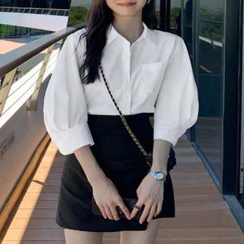 シアースリーブ ドッキングシャツ ボウタイシャツブラウス