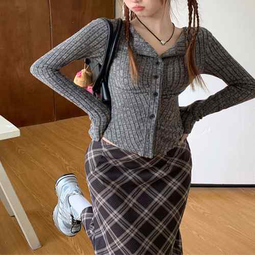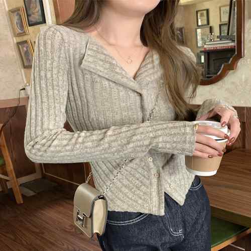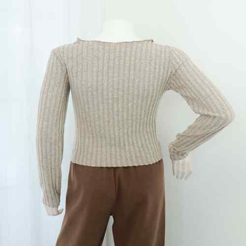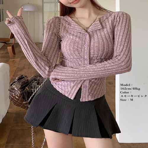 ニットトップス 前開き 編み フィット