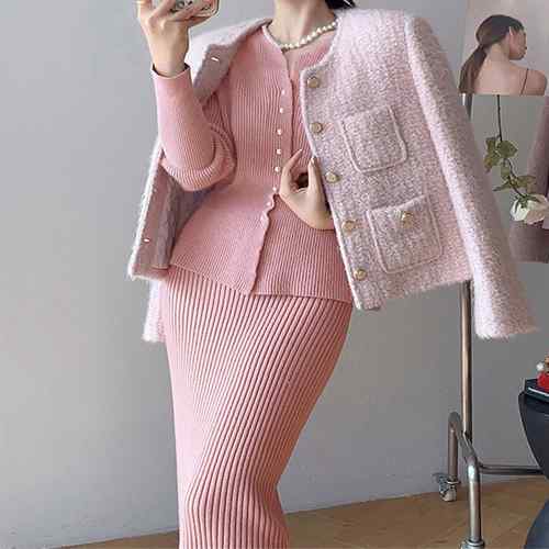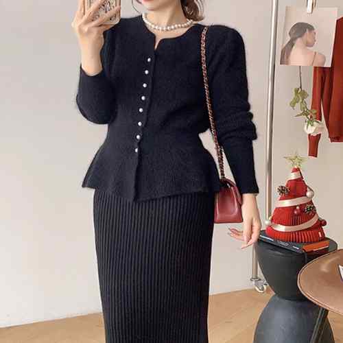アンサンブルニット ペプラムカーディガ