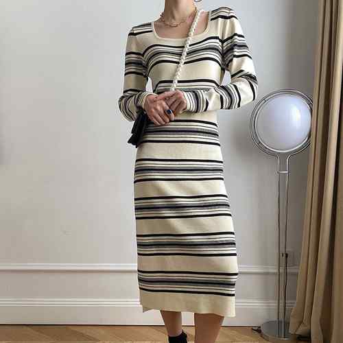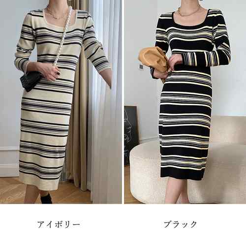 レトロロングワンピース スクエアネック