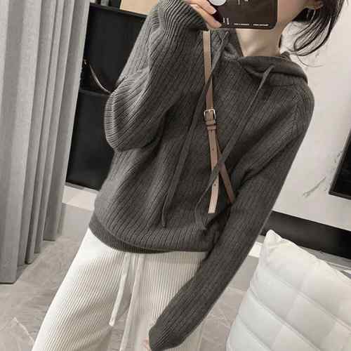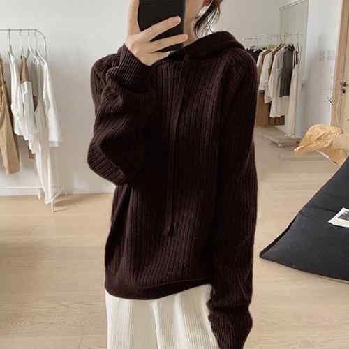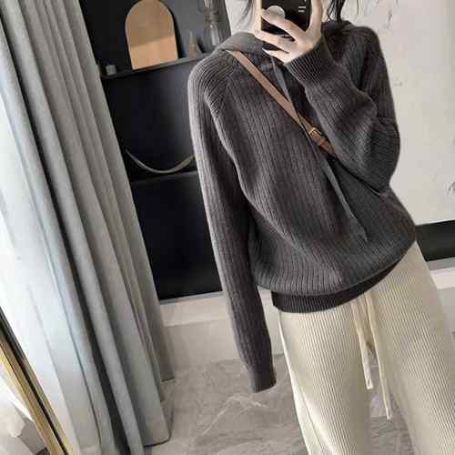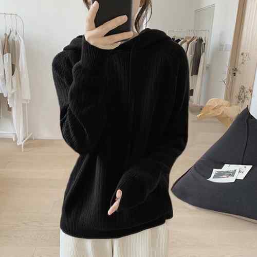 ラグランスリーブニット フード付き 体