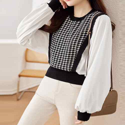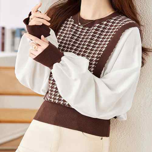 レディース 切り替えニットトップス バ