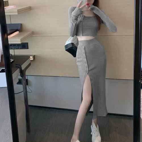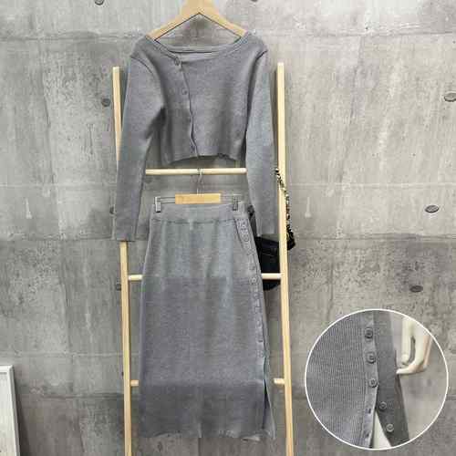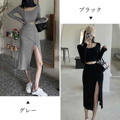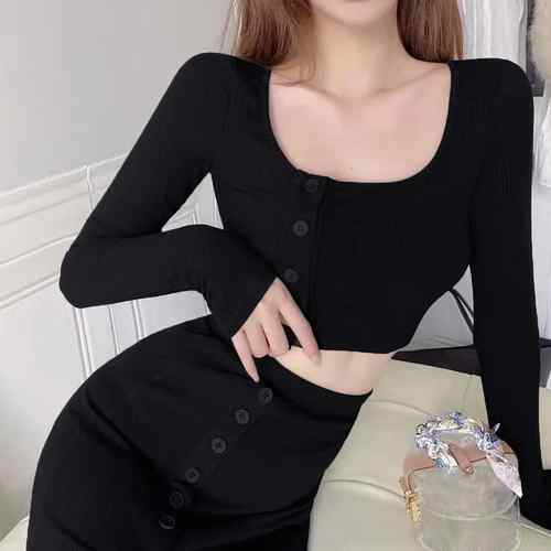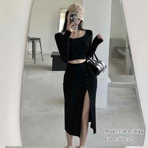 ショート丈 ニットトップス ボタン開き