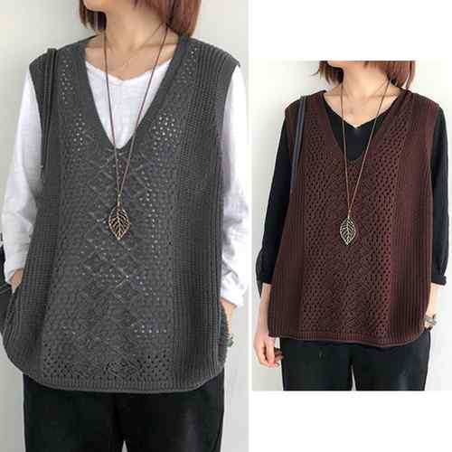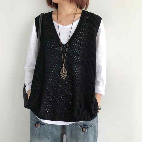 ノースリーブ ニットトップス Vネック