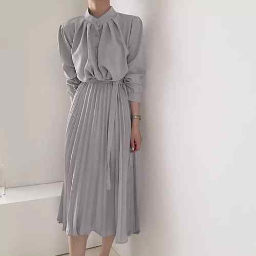 ウエストマーク スタンドカラーワンピ