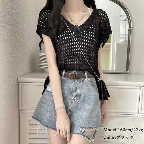 レディース 透かし編みトップス 肌見せ