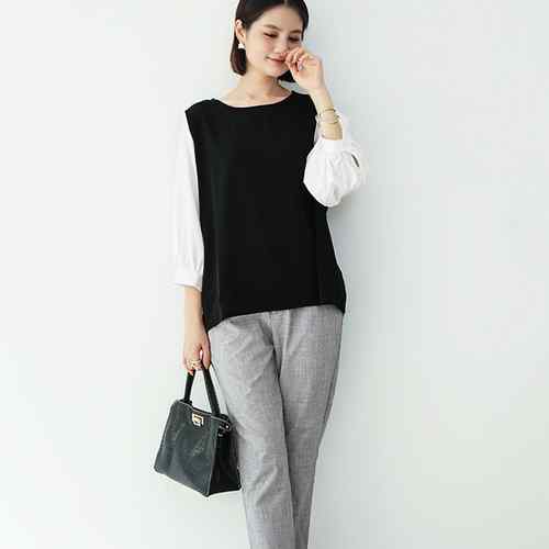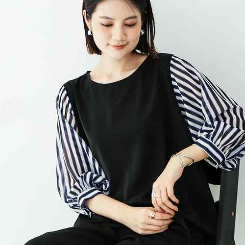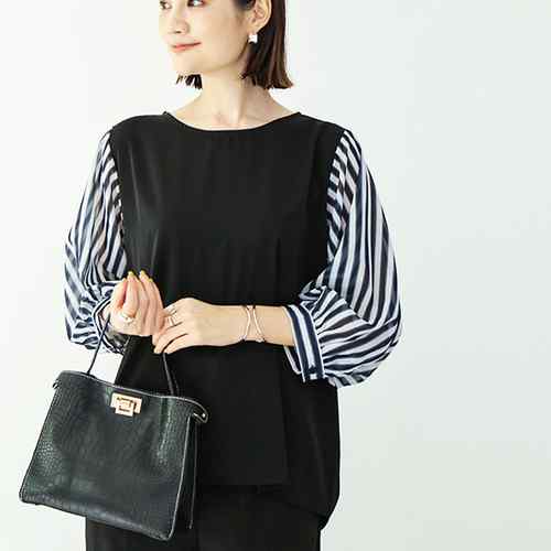 シアースリーブ ドッキングシャツ ボウタイシャツブラウス