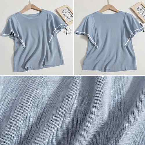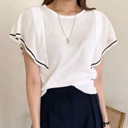クルーネック ニットソー 半袖 トップ