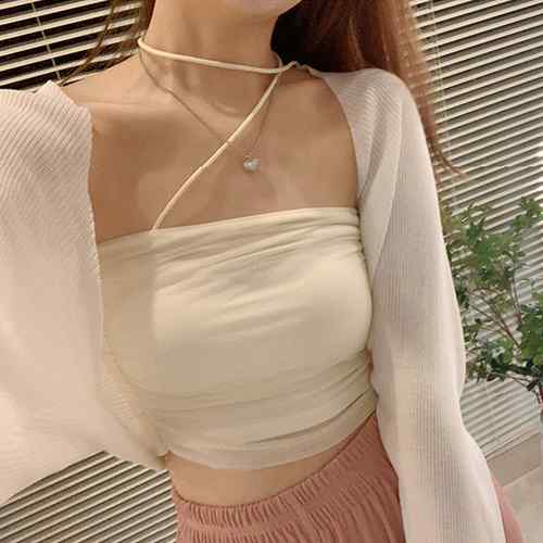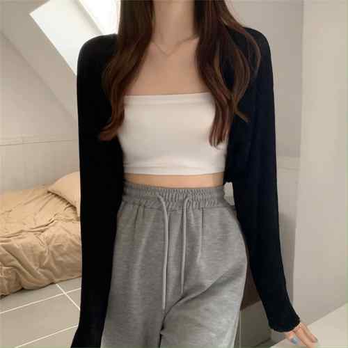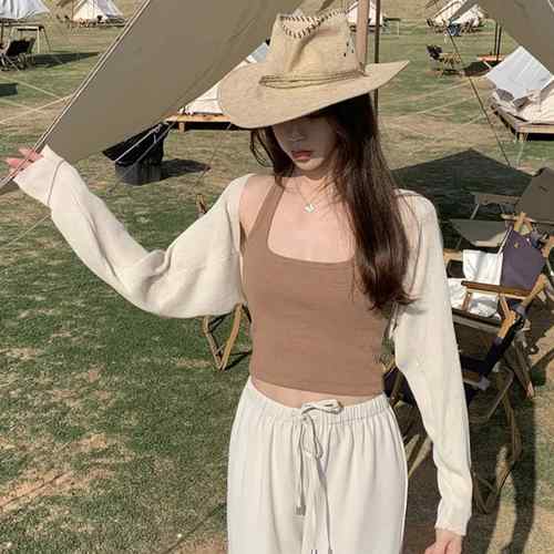 レディース クロップド丈 リブニットカ