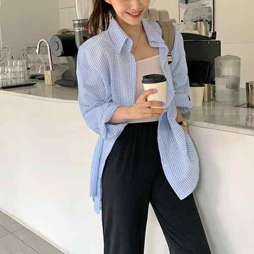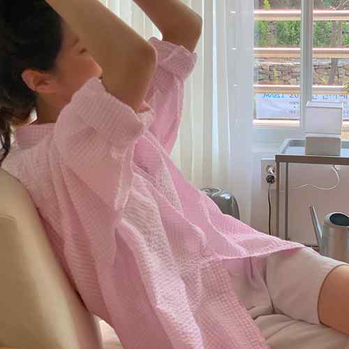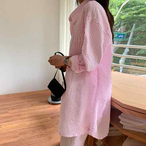 ピンク格子縞 長袖トップス おしゃれ