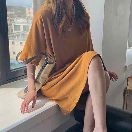 ドロップショルダー ロング丈Tシャツ