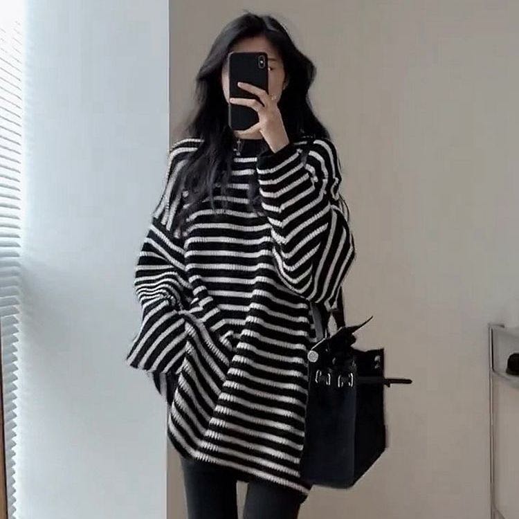 レディース トップス セーター ニット 秋冬 大きいサイズ ストライプ柄レディースファッション トップス ニット セーター セーター