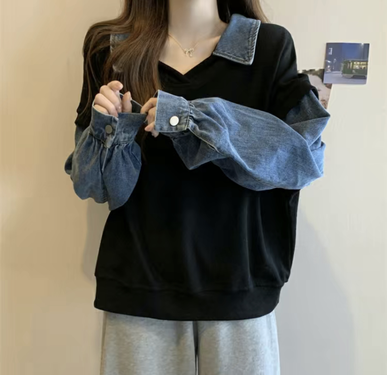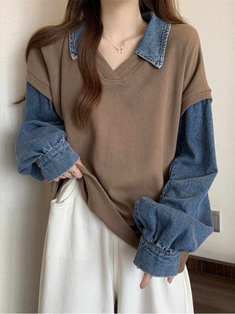 トレーナー レディース 重ね着風 異素